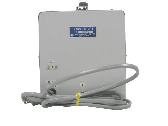 アップトランス,入力電圧:100・110・120・127V(内部切替), 出力電圧:120・220・240V,容量:1.5kVA,質量:12.5kg
